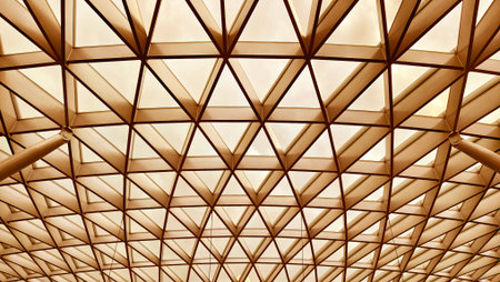 Background, texture from a view of a fragment of a metal frame lattice roof