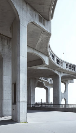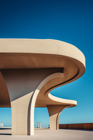 Lines of concrete structure. Minimal simplistic rows and curves. Zaragoza, Aragon, Spain