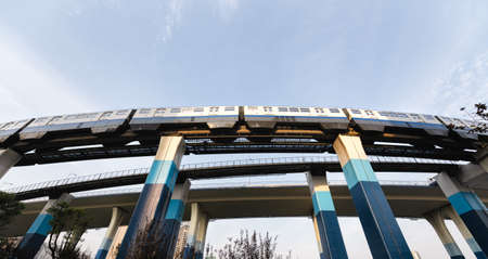 KUALA LUMPUR, MALAYSIA - APRIL 25: Monorail train on April 25, 2014 in Kuala Lumpur in Malaysia. KL Monorail serves 11 stations on two parallel elevated tracks. Line length is 8.6 km.