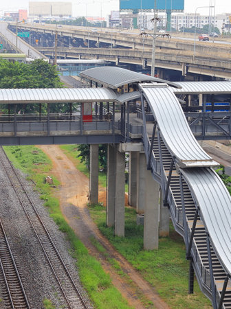 Railway and skytrain,Skytrain project that hold over in Bangkok Thailand