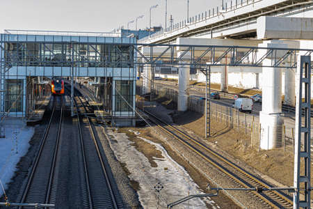 Moscow, Russia - March 02, 2022: the train rides in the city along the overpass. high quality photo
