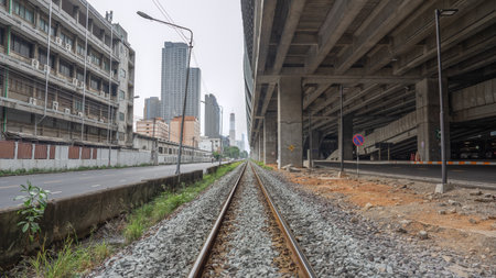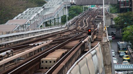 bts skytrain train railroad railway track in Bangkok, Thailand