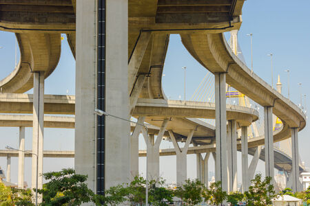 Bhumibol Bridge or Bridge of Industrial Rings is concrete highway overpass and cross the Chao Phraya River, Thailand.