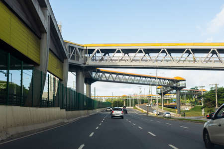 Salvador, Bahia, Brazil - June 06, 2021: Pedestrian walkway from subway to bus stop in Salvador.