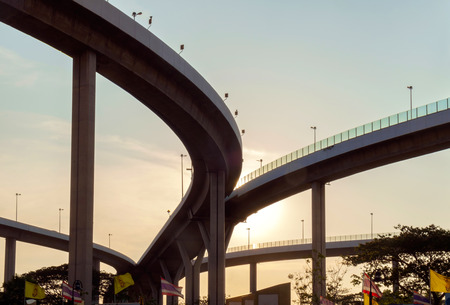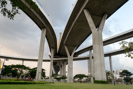 Huge elevated crossroad (Bhumibol bridge) in Bangkok, Thailand