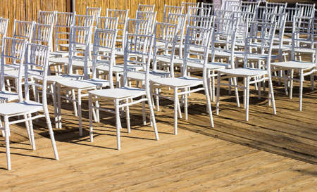 furniture chairs ranks outdoor on wooden deck floor patio exterior for some event space