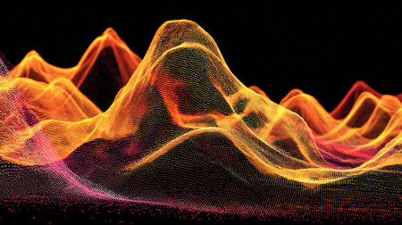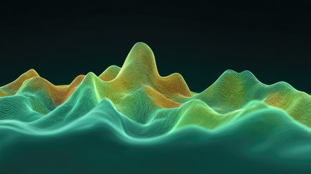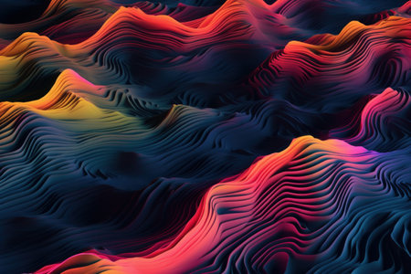 A stunning visualization of abstract wave patterns in vibrant colors creating a dynamic movement and digital landscape, perfect for creative projects.