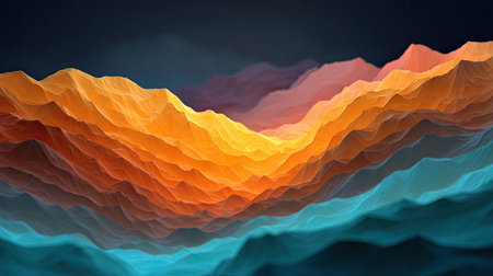 Stunning abstract representation of a colorful mountain landscape, showcasing vibrant gradients and wavy lines that evoke a sense of awe and tranquility.