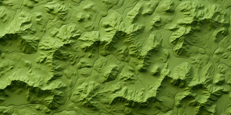 A stunning abstract representation of a topographic landscape featuring green and gold tones. This image highlights the intricate patterns and textures of mountains and forests.