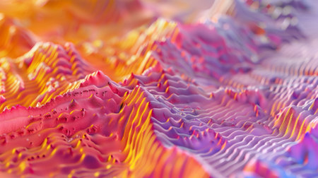 Stunning 3D visualization of a vibrant mountain landscape showcasing colorful patterns and artistic textures, ideal for projects focused on nature and design.