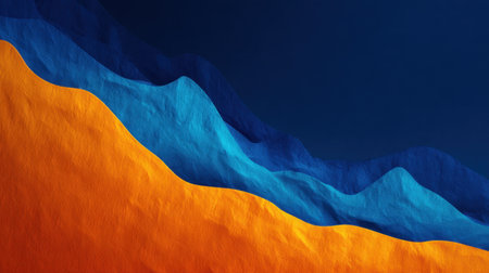 Vibrant 3D abstract waves display a stunning interplay of orange and blue colors. This artistic representation evokes movement and dynamic energy, perfect for creative projects.