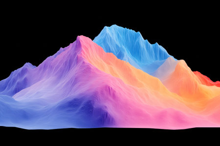 Vibrant abstract mountain landscape in gradient colors, showcasing shades of blue, pink, and orange against a black background, perfect for modern design projects