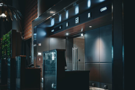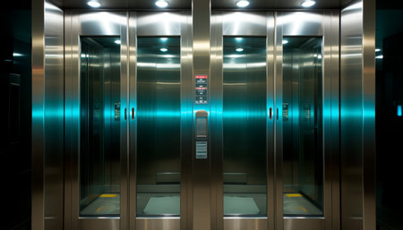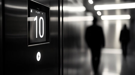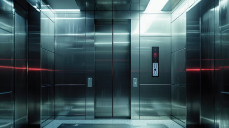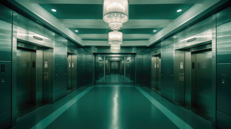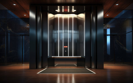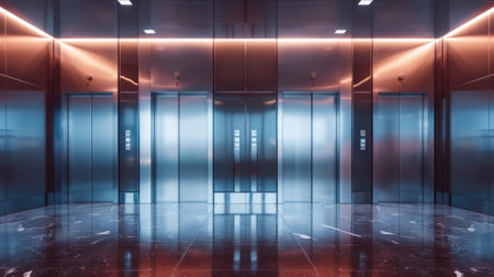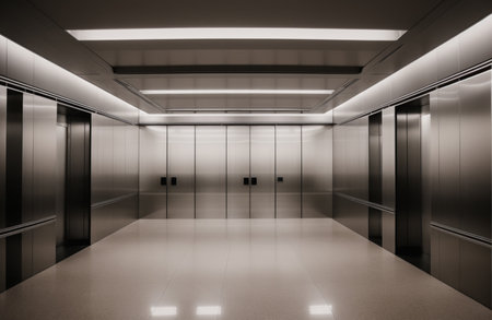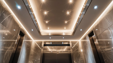 Modern, sleek elevator lobby with polished surfaces and elegant lighting fixtures
