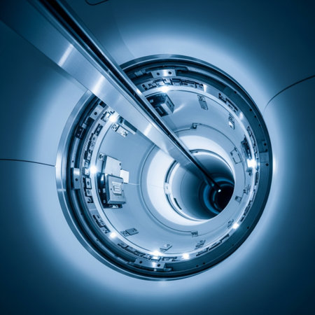 a modern, unoccupied elevator interior with symmetrical lines and polished metallic doors