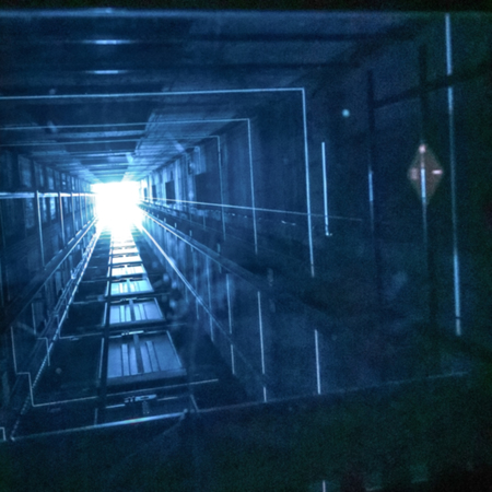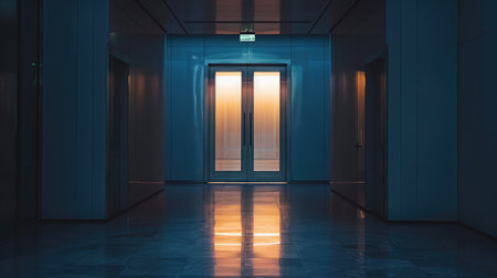 Modern elevator with its doors opening on a dark hallway, creating a mysterious atmosphere