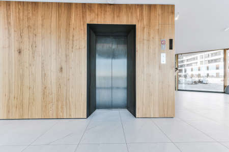 Modern elevator in hotel lobby. Modern elevator interior. Entrance door