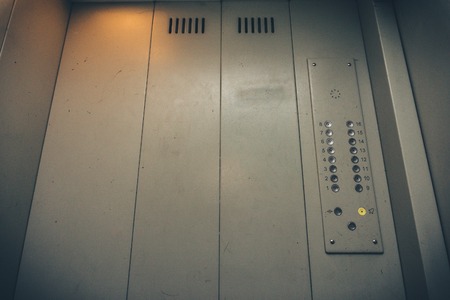 Close up of elevator buttons. Filtered image processed vintage effect.