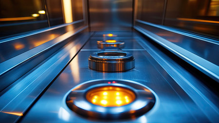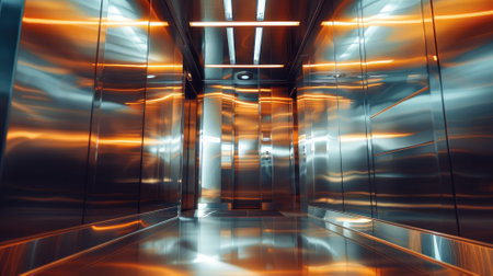 Modern elevator interior with sleek metallic finishes and warm lighting