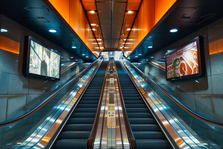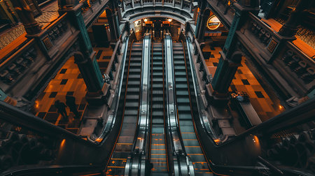 elevator escalator is moving staircase used as transportation between floors or levels building professional photography