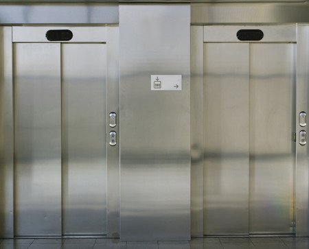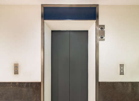 metal doors to the Elevator.Elevator with call buttons