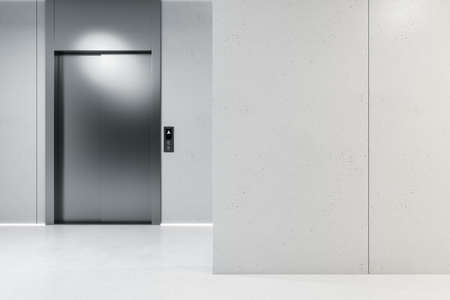 Contemporary concrete interior with elevators. Lift, lobby and start up concept. 3D Rendering