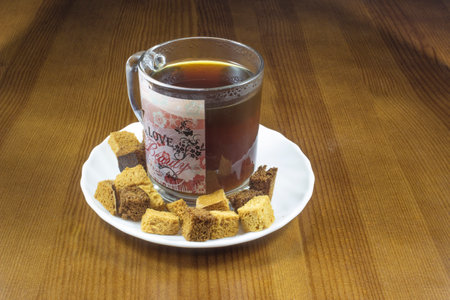 snack of bread toast with garlic, brown rye crouton.
