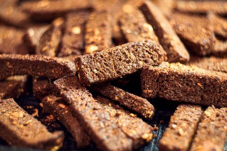 Fresh croutons made of whole grain flour, golden in color. Toasts for delicious sandwiches
