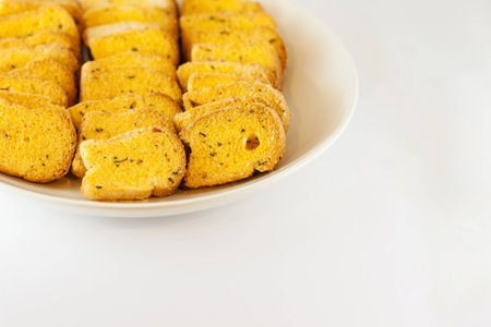 pieces of fried bread rusks on a white background