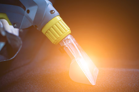 Young woman cleaning the car details with a washing vacuum cleaner