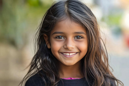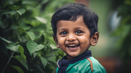 Cheerful Indian Kid Smiling Brightly, Showcases Joyful Expression and Cute Charm