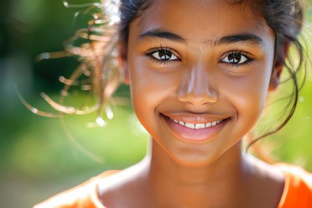 Cheerful and Radiant Young Girl from India Smiling Happily Against a Colorful and Vibrant Background