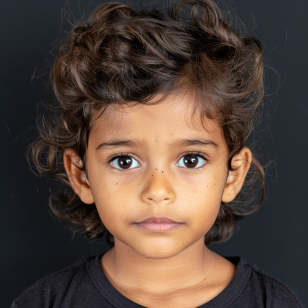 Bright eyes and a warm smile define this young boy, showcasing innocence and happiness. The simplicity of the setting enhances his joyful demeanor, reflecting a vibrant childhood in India.