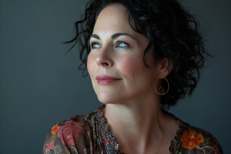 Portrait of a graceful mature woman with striking grey hair and a contemplative expression