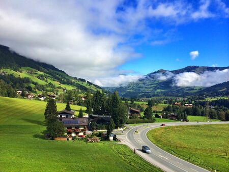 View to Swiss Alps covered by clouds in Adelboden, Switzerland