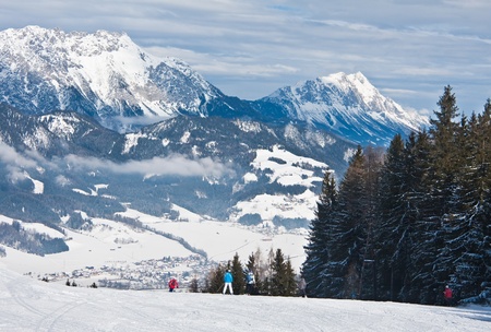 Mountains under snow in the winter. Ski resort Schladming . Austria