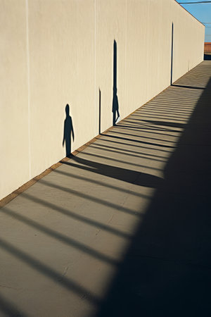 Striking contrasts emerge as sharp shadows stretch across a pristine white wall, creating an intriguing visual rhythm.