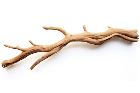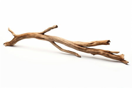 Driftwood Stick Isolated, Sea Wood Branch, Drift Wood on White Background, Generative AI Illustration