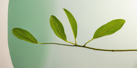 AI Generated. Green Leaf Branch with Three Leaves on a Light Green Background
