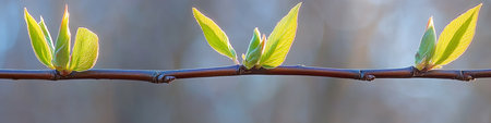 Three Spring Buds on Isolated Branch Symbolizing New Growth, Renewal, and the Beginning of Spring