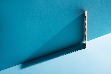 A close-up captures a paperclip resting on a textured surface, casting a prominent shadow. The composition features contrasting light and shadow, highlighting the object's form. The scene's neutral tones suggest an indoor environment. This image is suitable for various commercial uses, including website design and editorial content.