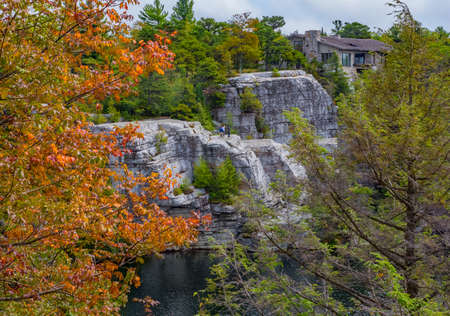 An early Autumn view of the cliffs overlooking Lake Minnewaska in Ulster County New York.