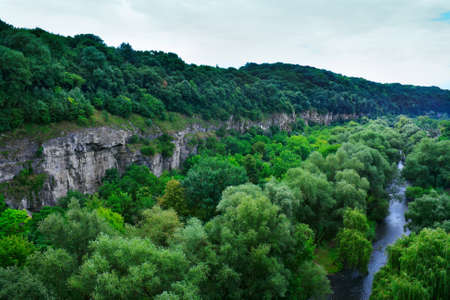 Buky Village Canyon at Hirskyi Tikych River with Rocky Cliff and Forest