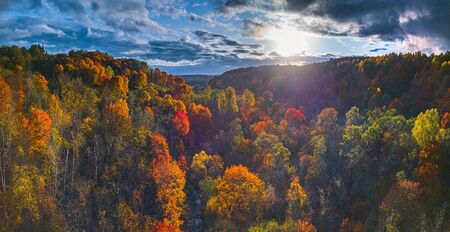 A breathtaking aerial view of an autumn forest in beautiful colors