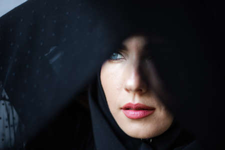 Portrait of a beautiful young woman in a headscarf.