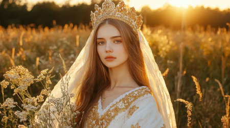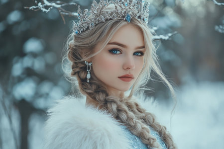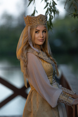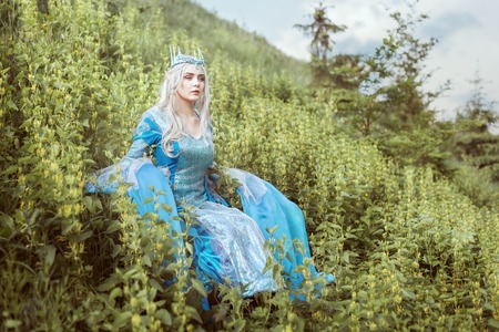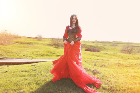 Beautiful young Queen with a crown on his head and in a beautiful dress.