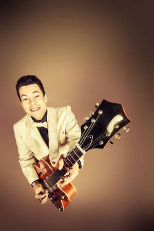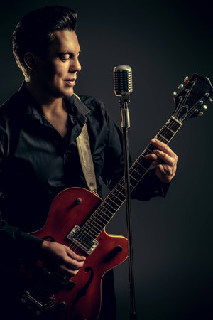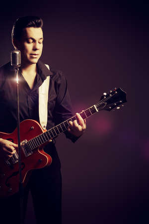 Handsome male singer, who plays in the style of the sixties. Rock'n'roll, jazz man. Nostalgia.