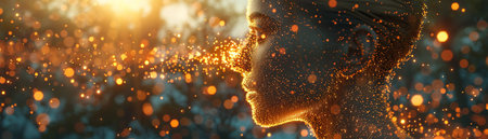 Abstract Portrait of Man with Artistic Light Effects and Motion Blur.