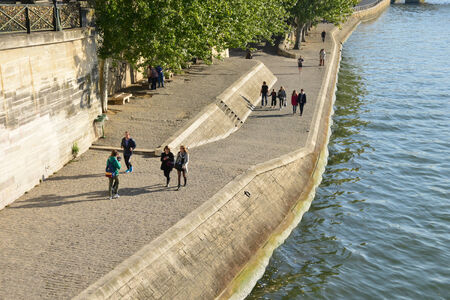 Paris France - May 25, 2019: People visit Seine river bank in Paris France