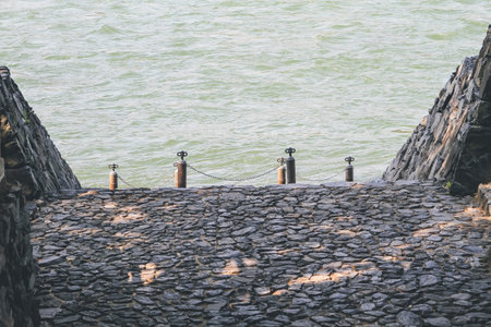 Shore stone path and blue sea landscape