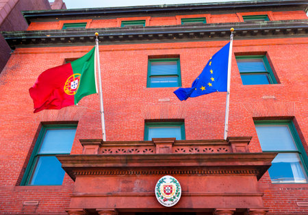 Portugal Embassy Seal EC and Portugeuse Flags Symbol Embassy Row Massachusetts Avenue Washington DC